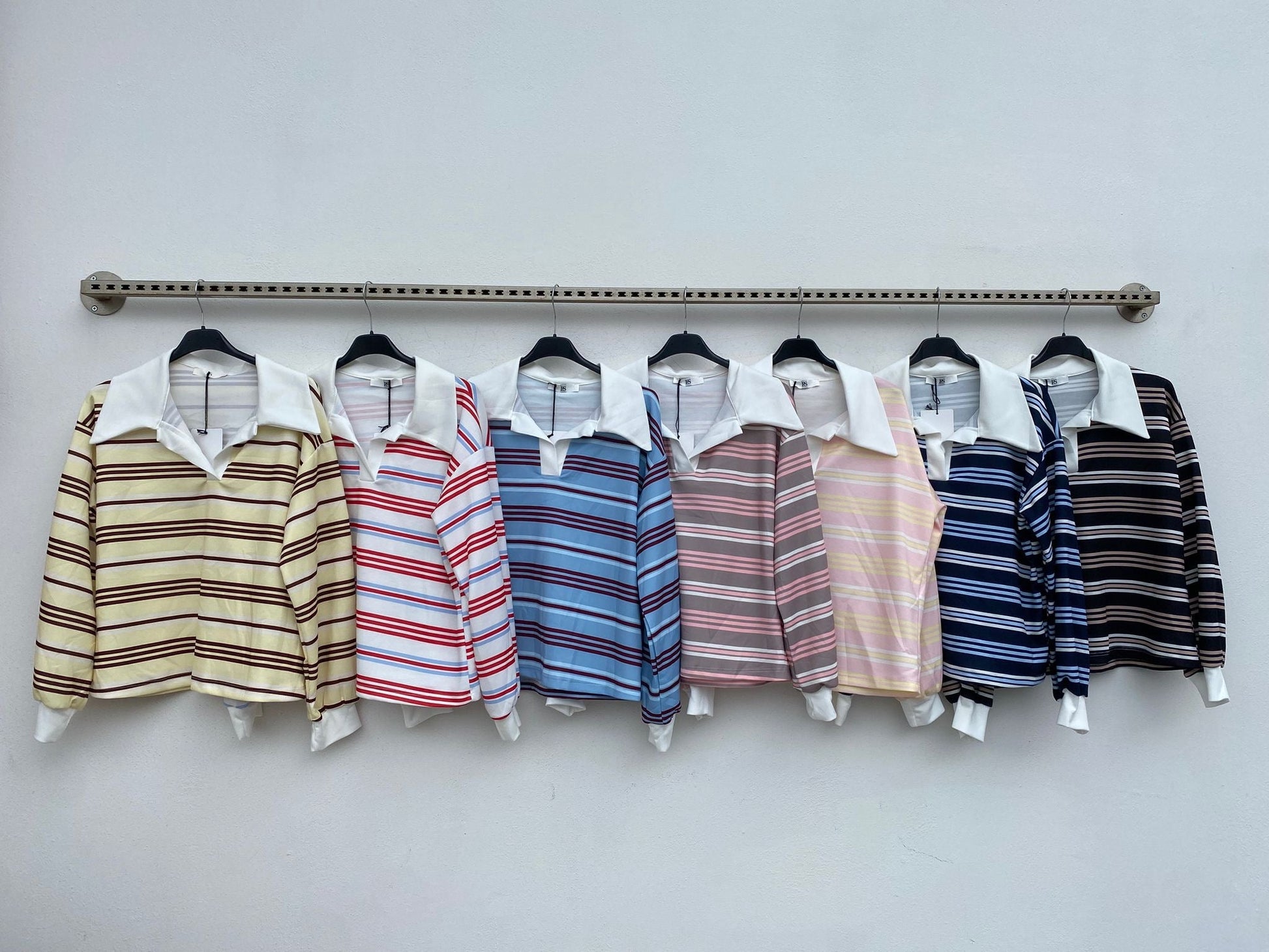 Striped polo collar sweater, characterized by a classic design reinterpreted in a modern way. Clean lines and a comfortable fit make it a versatile piece, ideal for a refined yet casual look.