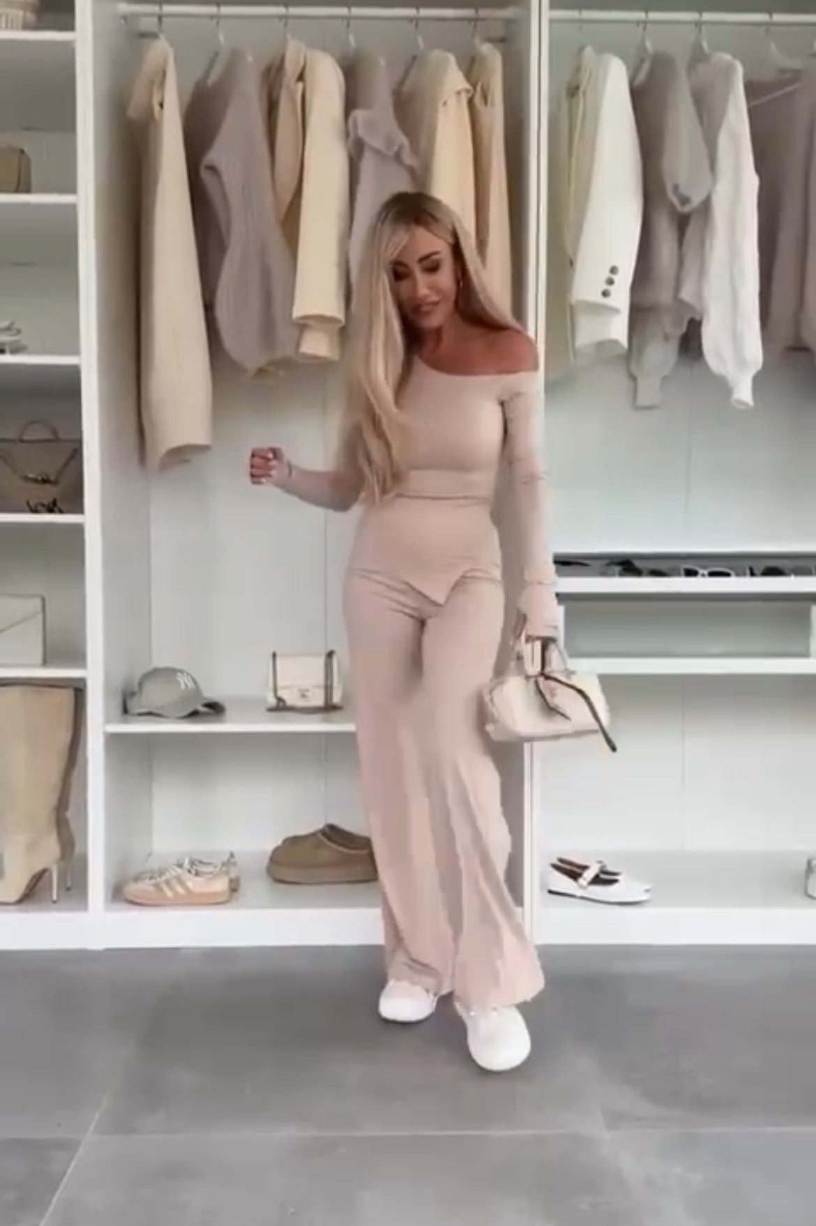A two-piece outfit with an essential and refined style, perfect for those who love comfort and versatility without sacrificing elegance. The set consists of a long-sleeve sweater with a soft cut and matching long pants with a fluid and comfortable fit.